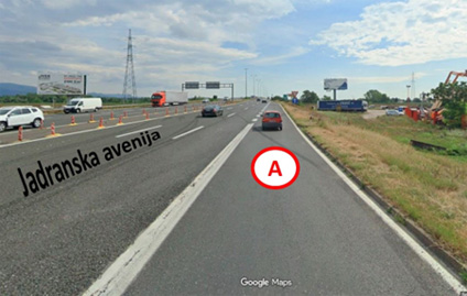 Na kraju prometne trake koja „nestaje“ (slika 8.) vozači vozila u prometnom toku A mogu se u pogodnom trenutku prestrojiti u prometni tok Jadranske avenije. To mogu napraviti nakon što se uvjere da prestrojavanje mogu obaviti sigurno, bez ometanja vozila koja voze desnom trakom Jadranske avenije, uz prethodnu najavu uključivanjem lijevih pokazivača smjera, propustivši vozila u prometnoj traci Jadranske avenije u koju se uključuju, prilagođenom brzinom (usporavanjem ili eventualno ubrzavanjem, ako to prometni uvjeti dozvoljavaju).
